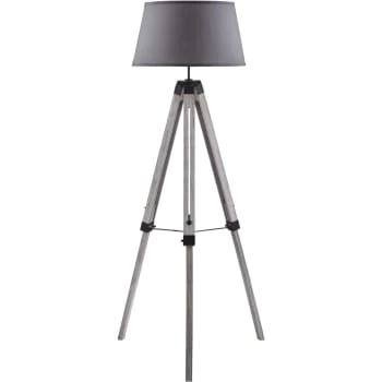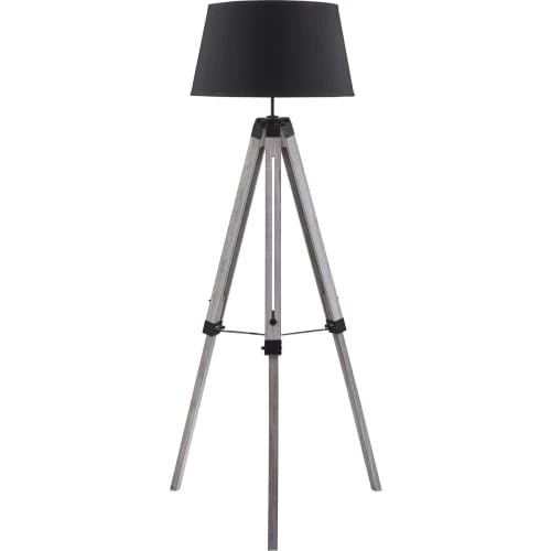 Maisons Du Monde Lampadaires Lampadaire En Bois D’ailante Beige Et Abat-jour En Tissu Blanc H169