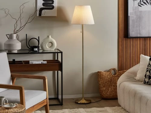 Maisons Du Monde Lampes à Poser Lampe En Céramique Beige Et Fer Doré, Abat-jour En Coton Blanc