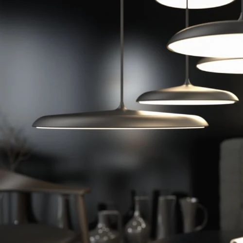 Dessinée par Bønnelycke MDD, la collection de suspension LED Artist s’inspire du monde musical et ressemble à la cymbale d’une batterie. Cette collection se décline en différentes finitions.