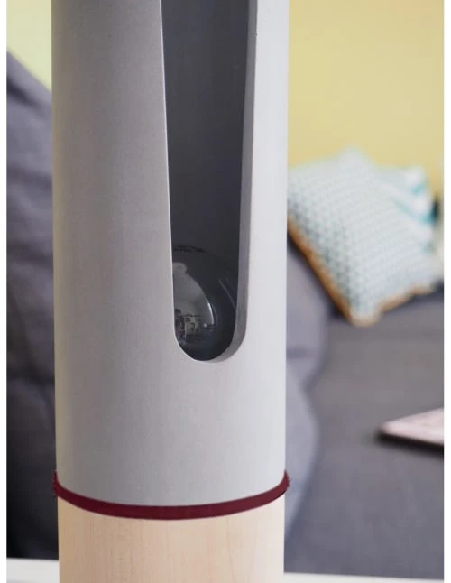 Sa chemise en béton contraste avec son socle en bois d’érable français, les deux parties délicatement liées par un anneau de feutrine de couleur au choix. Le design made in France dans votre intérieur! Cordon textile blanc, ampoule non fournie au style et forme de votre choix.