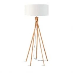 Maisons Du Monde Lampadaires Lampadaire En Bois Noir, Gris Et Beige, Abat-jour En Lin H154