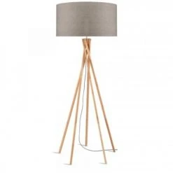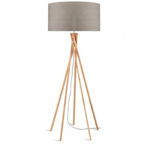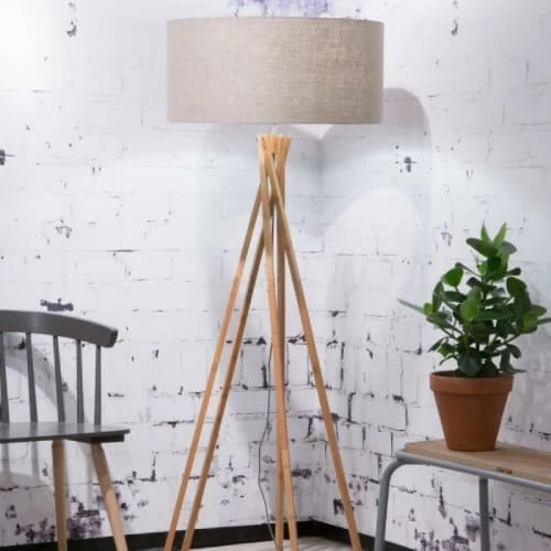 Maisons Du Monde Lampadaires Lampadaire En Bois Noir, Gris Et Beige, Abat-jour En Lin H154