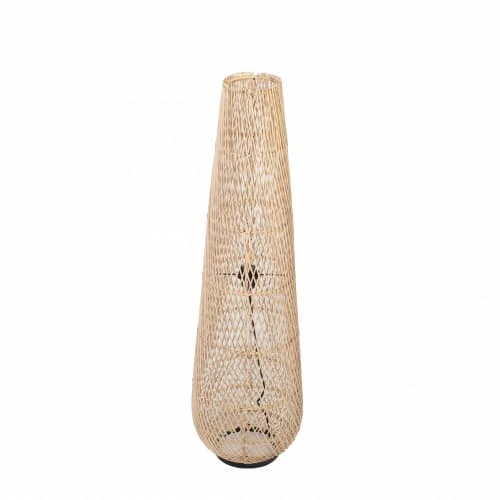 La lumière est diffusée vers le haut et vers le bas, mais aussi à travers les tiges de rotin ce qui assure un éclairage d’appoint harmonieux et doux.