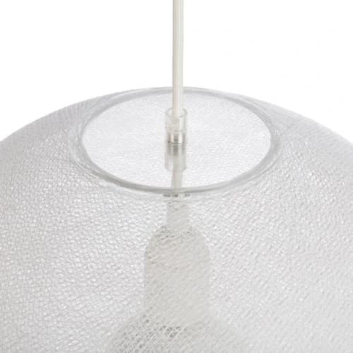 La sphère diffusante est faite de fils tissés, elle diffuse une belle lumière filtrée et légèrement teintée qui apporte une touche très personnelle à votre déco.