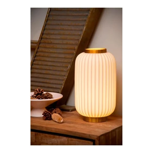 Maisons Du Monde Lampes à Poser Lampe En Verre Vert Et Abat-jour En Lin Recyclé Blanc