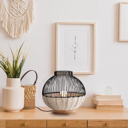 Maisons Du Monde Lampes à Poser Lampe En Céramique Beige Et Fer Doré, Abat-jour En Coton Blanc
