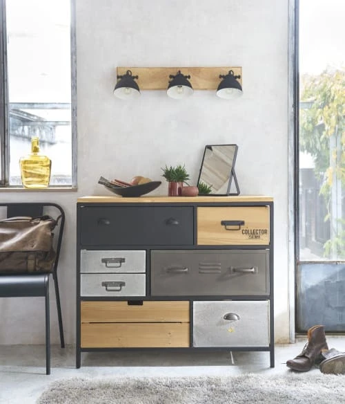 Pour une déco façon « hipster », optez pour l’applique 3 lampes en manguier et métal noir et son charme brut.