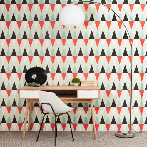 Ce lampadaire design en métal, doté d’un abat-jour globe blanc PVC, se glissera dans un salon blanc et moderne rappelant le style des années 70.