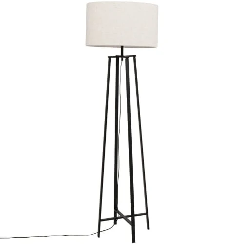 Maisons Du Monde Lampes à Poser Lampe En Céramique Beige Et Fer Doré, Abat-jour En Coton Blanc