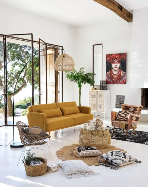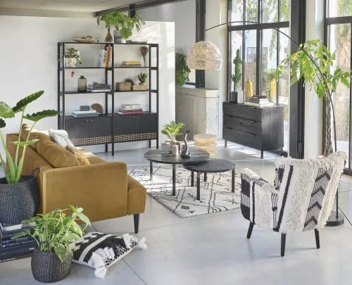 Ce lampadaire ethnique chic s’empare des nouvelles tendances en alliant avec brio métal noir et fibres naturelles tressées.