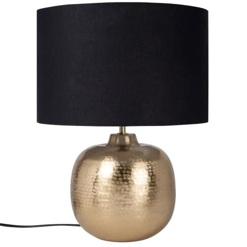 Maisons Du Monde Lampes à Poser Lampe En Céramique Beige Et Fer Doré, Abat-jour En Coton Blanc