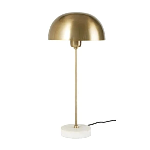Maisons Du Monde Lampes à Poser Lampe En Céramique Beige Et Fer Doré, Abat-jour En Coton Blanc