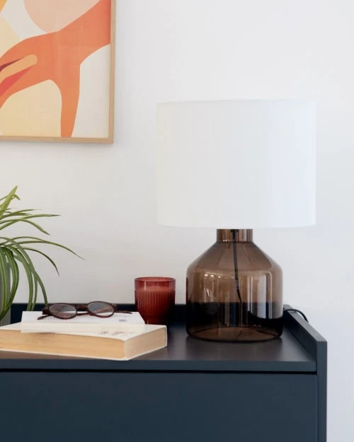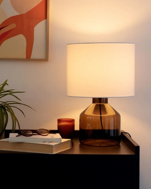 Maisons Du Monde Lampes à Poser Lampe En Céramique Beige Et Fer Doré, Abat-jour En Coton Blanc