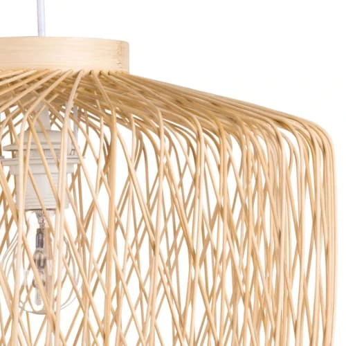 Craquez pour la suspension en bambou D44 DOBLA et son petit look végétal ! Sa forme arrondie et les motifs formés par sa structure en bambou ne manqueront pas de vous séduire. Vous pourrez ainsi profiter d’effets de lumière surprenants dans votre maison en plus d’une décoration lumineuse à l’aspect authentique. Jouez le total look exotique chic en associant ce luminaire à un canapé en velours couleur bleu paon, quelques plantes et une décoration murale feuille de palmier dorée. On adore, et vous ?