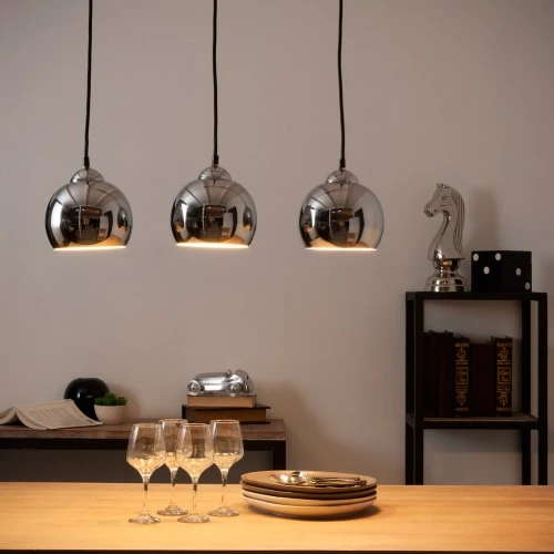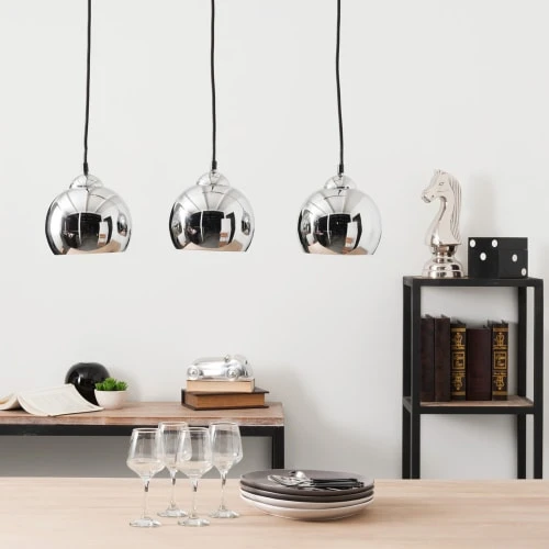 Esprit 70’s revisité, la suspension triple en aluminium chromé TRIO va faire fureur dans votre séjour ! Avec cette suspension dotée de 3 boules métal, offrez à votre intérieur un lustre moderne et terriblement élégant. Une suspension triple idéale pour éclairer un plan de travail ou une table à manger pour une ambiance tendance et raffinée. On adore, et vous ?