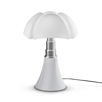 Laissez-nous vous présenter cette lampe design Pipistrello en version Medium : cette lampe de table ou de sol à LED intégrée (écologique, économique et plus performante), est composée d’une base tulipée en métal, d’un bras en acier inoxydable brossé télescopique (50 à 62 cm) et d’un diffuseur en méthacrylate blanc opalin. Design oui, mais modulable également, la Pipistrello Medium est équipée d’un câble d’alimentation avec un variateur d’intensité lumineuse (dimmer).