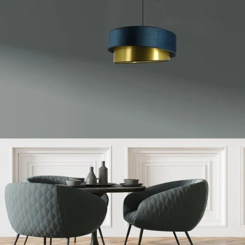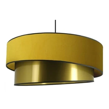 Cette suspension moderne grand format de la collection Ionos Art Deco éditée par Metropolight est composée d’un cordon d’alimentation d’une longueur de 53cm supportant un abat-jour constitué de deux modules cylindriques superposés en textile velours et PVC imitation laiton.