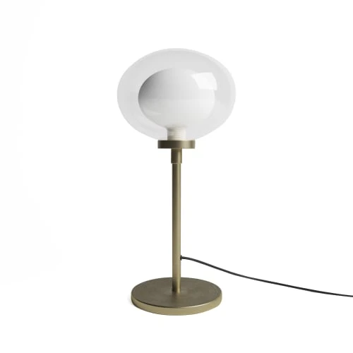 Vous aimez les ambiances glamour ? Tamisez la luminosité de votre pièce à vivre avec la lampe à poser Trapani. Son pied en métal doré vieilli, constitué d’un socle circulaire et d’une fine tige élancée, est d’une élégance rare. Son globe à double paroi de verre, transparent à l’extérieur, opaque à l’intérieur, offre une douce lumière. Choisissez une ampoule LED de couleur chaude afin d’obtenir une atmosphère plus ou moins jaune-orangée.
