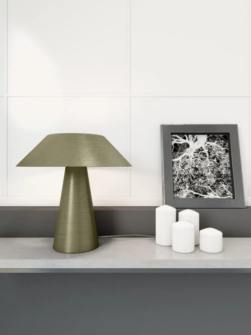 La lampe design Kavala revisite la lampe champignon en métal des années 50. Revue et corrigée, dessinée cette fois-ci avec des formes coniques à la géométrie précise, elle s’intègre pleinement comme un objet déco. Tant mieux ! Car si sa fonction première est d’offrir un éclairage ciblé, on a également envie d’être content de la regarder en plein jour. Tout converge pour que la lampe à poser design Kavala retienne l’attention : des contours élégants, une conception atypique avec un abat-jour lui aussi en métal, un doré patiné original. Avec son minimalisme sophistiqué, cette lampe en métal or sera parfaite pour sublimer un intérieur contemporain qui partage avec elle l’amour des lignes vintage !