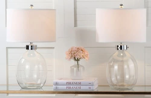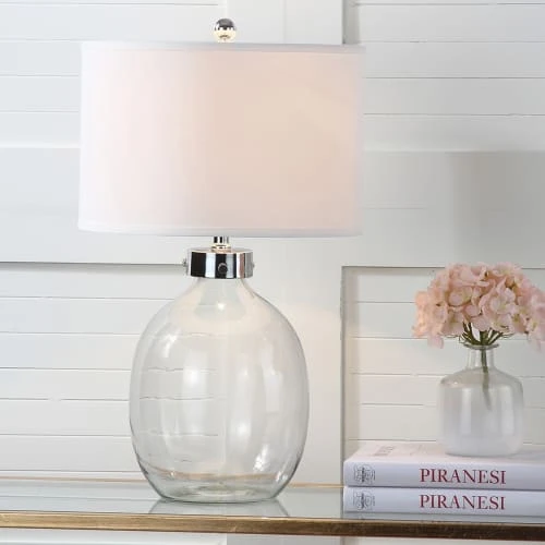Maisons Du Monde Lampes à Poser Lampe En Verre Rose Et Transparent Avec Abat-jour En Coton écru